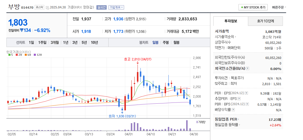 - 시가총액: 1,083억