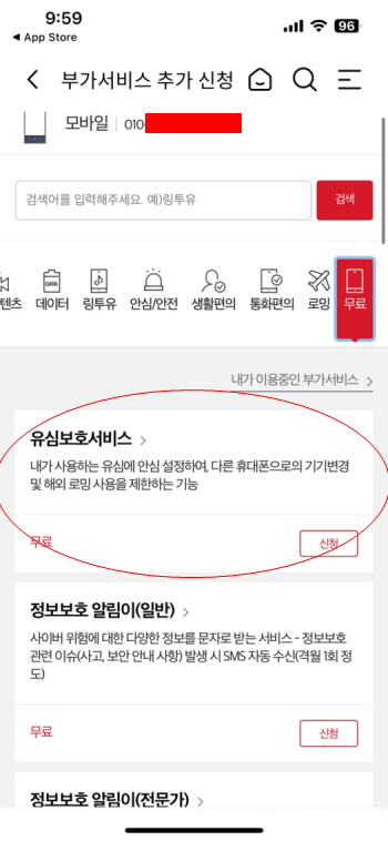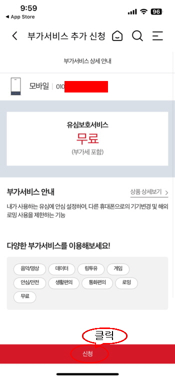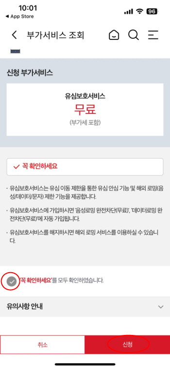 - ‘유심보호서비스’ 선택 후 가입 진행