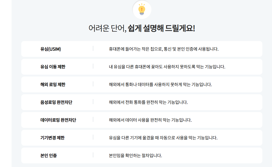 - 해외 로밍 보호: 해외에서 유심이 악용되는 상황 방지